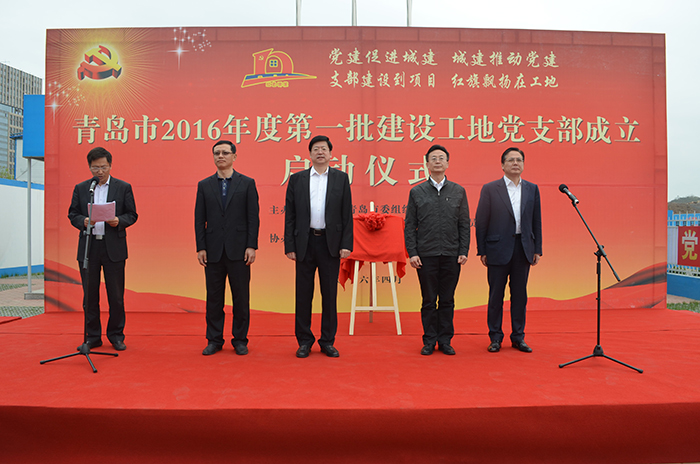 Chen Dawei, the Vice Minister of Organization Department of Qingdao Municipal Party Committee, Chen Yong, the Secretary of Party Committee and director of Urban-Rural Construction Committee of CPC Qingdao City, Sun Zongxian, the Director of Qingdao Construction Management Bureau, Ding Hongbin, the Chairman of CNQC and Liu Zhouxue, Chairman of Qingdao Construction Group Co., Ltd and other relevant leaders attended the launching ceremony. The activity was carried out centering on the theme “construction of Party branch in the project site, waving of the red flag in the construction site” and it carried out the spirit of meeting of “promoting urban construction by Party building and impelling Party building by urban construction” and “Two to Learn and One to Do” in depth.
