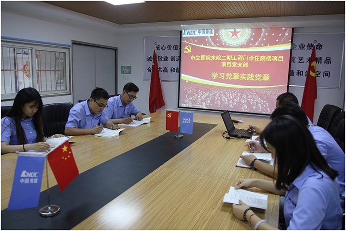 On June 16, the Party branch of the phase II project of municipal hospital organized all Party members to carry out the “Two to Learn, One to Do” education activity. At the meeting, the secretary of the Party branch Song Pengfei led all Party members to review the Party Constitution and Party rules, learn the spirit of a series of important speeches made by the general secretary Xi Jinping and discuss how to make “Two to Learn, One to Do” used in the daily work.
