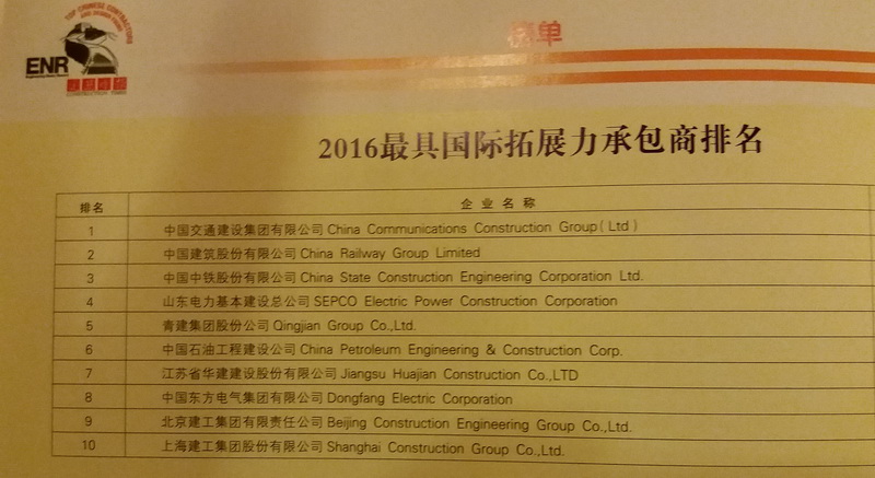 Meanwhile, CNQC was selected as “Top 10 Contractors Most Capable of International Expansion” and its ranking in 2016 rose from number 6 to number 5.