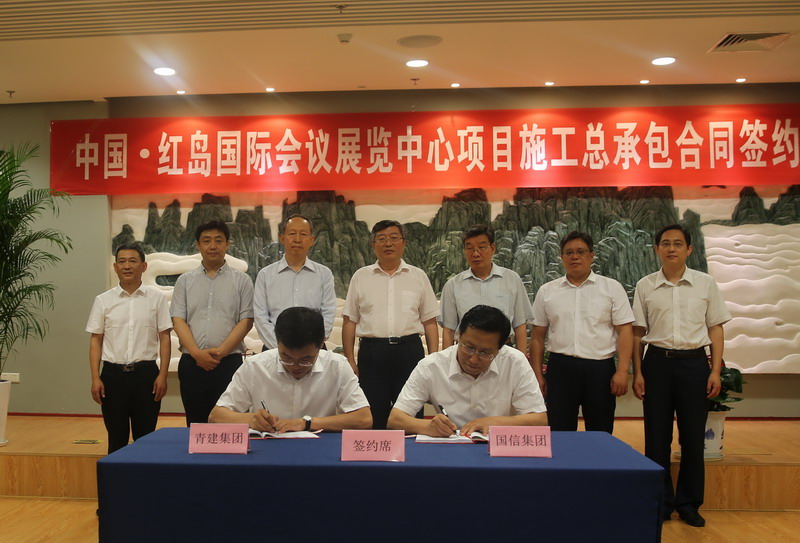 On June 21, the signing ceremony of “The General Contract for Construction of China Hongdao International Convention and ExhibitionCenter” between Qingdao Conson Development (Group) Co., Ltd. and Qingjian Group Co., Ltd. was held at the conference center of Qingdao Grand Theater. Among those at present the signing ceremony were Wang Jianhui, president of the board of Qingdao Conson Development (Group) Co., Ltd, Qu Liqing, president of the board of Qingdao Conson Industry Co., Ltd., Wang Yu, general manager of Conson Industry Co., Ltd., Du Bo, chairman of the board of Guotsing Holding Group Co., Ltd., counselor Zhang Dezhi, president Wang Xianmao, Qingjian Group Co., Ltd. CEO Zhao Shunting and president Wu Shuyi. The signing ceremony was presided over by Wang Yu, general manager of Qingdao Conson Industry Co., Ltd. President of the board of Qingdao Conson Industry Co., Ltd.Qu Liqing and Qingjian Group Co., Ltd. president Wu Shuyi signed “The General Contract for Construction of China Hongdao International Convention and Exhibition Center”, leaders from both sides witnessing the signing of the contract.