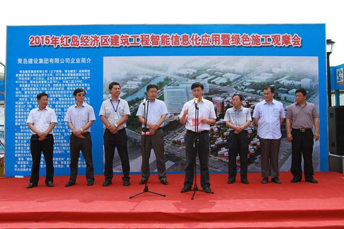 6月18日,2015年红岛经济区建筑工程智能信息化应用暨绿色施工观摩会在青岛建设集团承建的国际信息创新园项目顺利举行。观摩会由区质安监站站长王进文主持,区建设局局长蒲洪强、青岛建设集团总裁孙华明分别讲话,红岛经济区内各在建工程建设单位、监理单位、施工单位、劳务单位代表400余人参加了本次观摩会。