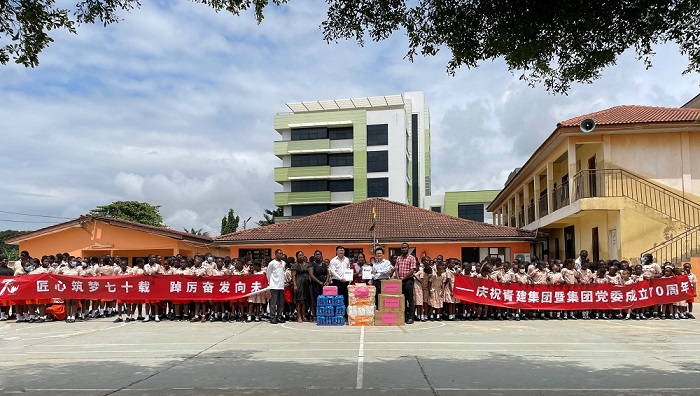 为庆祝集团暨集团党委成立70周年,加纳分公司组织了阿克拉地区项目管理人员对TAC教堂项目观摩学习,营造争先创优和“比、学、赶、帮、超”的良好氛围。加强项目建设的同时,加纳分公司还积极履行社会责任,向加纳当地学校捐赠学习和生活用品。