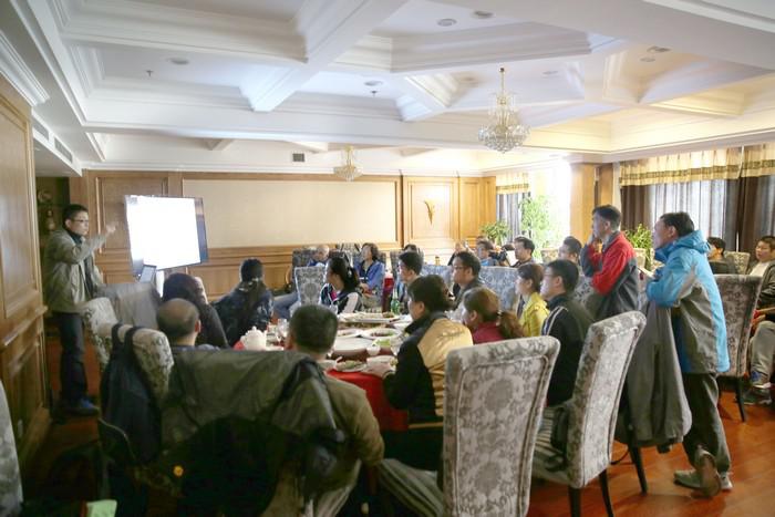 李学亮主席从像素、储存格式、白平衡和感光度等摄影的基础知识入手,系统的讲述了色彩的搭配、构图的层次、曝光的技巧、景深的控制等知识,并展示了他的部分优秀风景摄影作品。会员们纷纷将自己的摄影作品交给讲师点评。