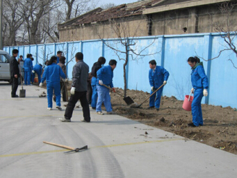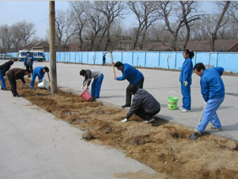 公司购买了大量的月季花苗和小松树并提前规划了公司现场的花坛位置。职工们自由组合,有的负责挖坑刨土,有的负责提桶浇水,大家配合默契,挥汗如雨,整个“工地”笑声不断。4个小时过去了,共种下300余棵月季花苗。