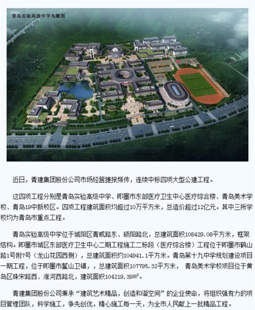 青岛新闻网:青建中标四项大型公建工程 19中美术学校均在列