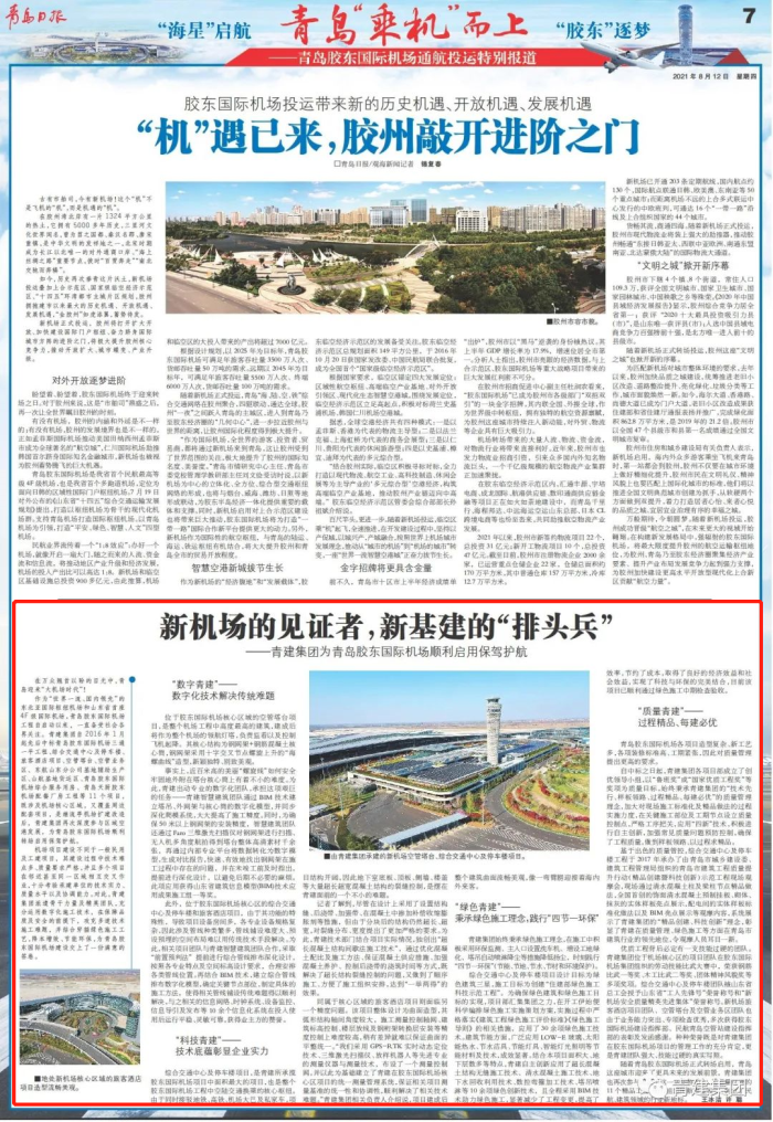 新机场的见证者,新基建的“排头兵” ——青建集团为青岛胶东国际机场顺利启用保驾护航