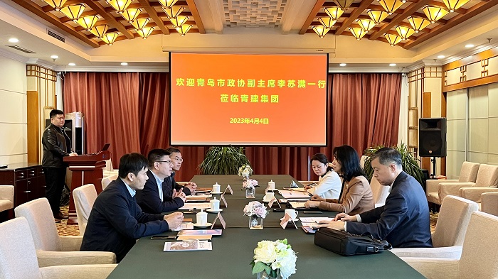 4月4日,青岛市政协副主席李苏满、经济工作办公室主任傅琦、港澳台侨和外事工作办公室三级调研员李博莅临青建走访调研。国清集团董事长王从远、总裁吴书义、总工程师王胜参加调研。