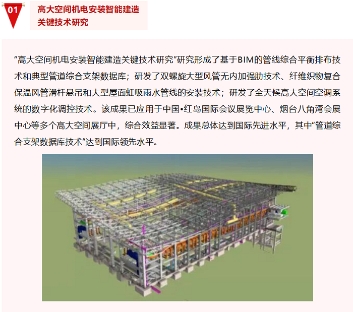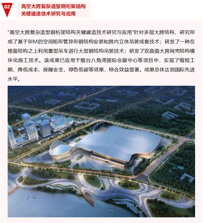 与会院士、专家认真听取了课题组成员对科技成果项目背景、创新点及技术内容、知识产权情况、经济社会效益及应用前景等四个方面的汇报,仔细审阅了评价资料,并就相关细节和应用情况进行了评估和问询。专家组经综合评价,一致认为:“高大空间机电安装智能建造关键技术研究”成果总体达到国际先进水平,其中“管道综合支架数据库技术”达到国际领先水平;“高空大跨复杂造型钢桁架结构关键建造技术研究与应用”、“超大云浪造型金属屋面体系关键技术研究与应用”、“腐蚀驱动智能纤维的研发及修复裂缝机理研究”3项科技成果总体达到国际先进水平,为集团科技品牌打造和创新发展再添新动力。