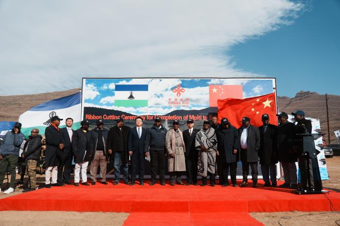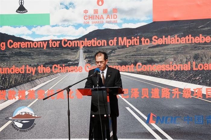 吕良忠代办致辞表示,莫塞公路由中国政府在共建“一带一路”框架下提供优惠贷款修建,承建方青建集团用5年时间将之前的碎石路升级为沥青路,该项目的成功实施为莱索托创造了约1500个就业岗位,并为当地培训了300多名技术人员,是中莱友谊的见证。