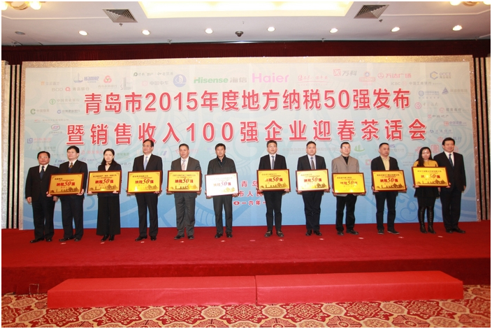 青建集团荣获“青岛市2015年度地方纳税50强企业”