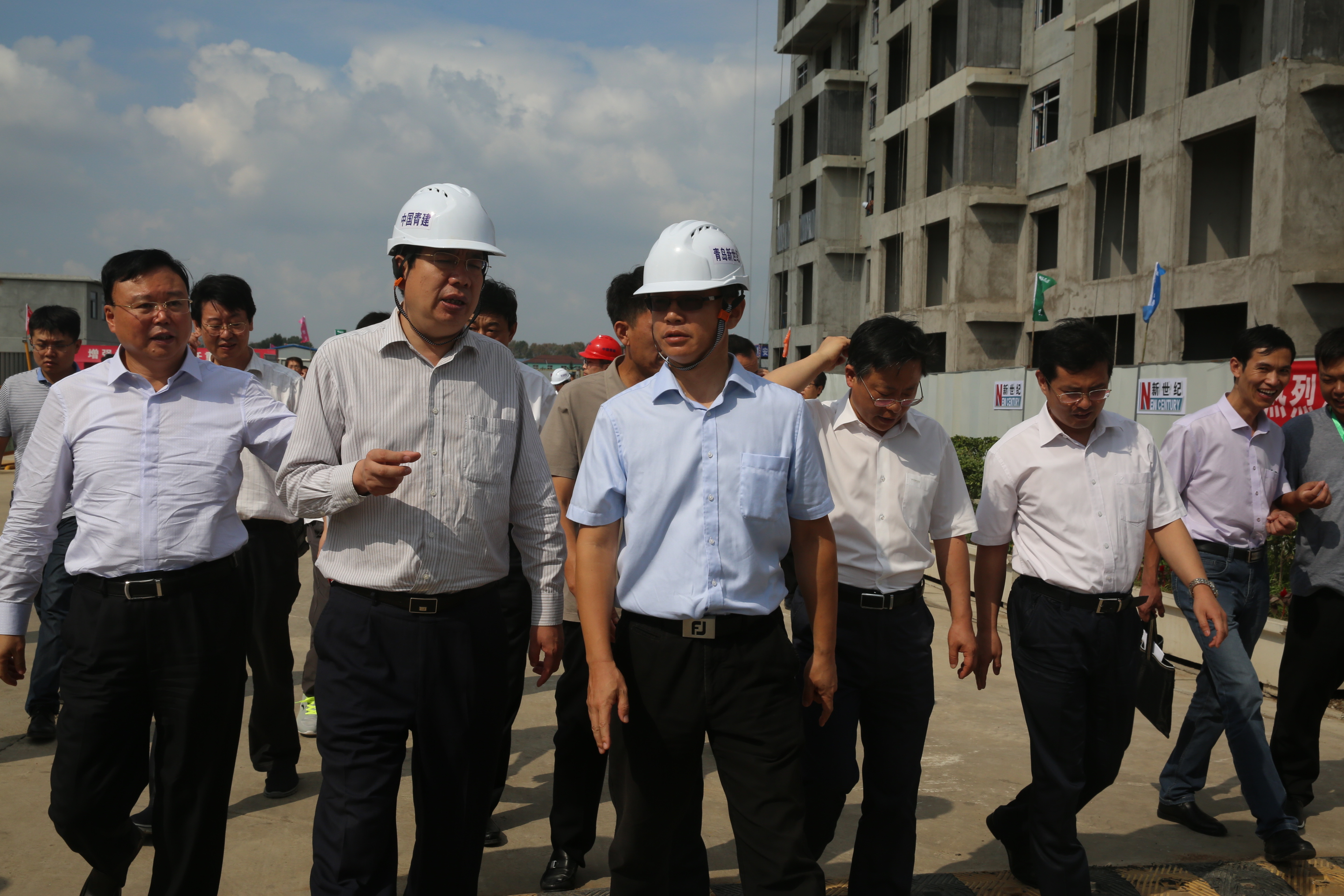 9月26日上午,山东省住房和城乡建设厅厅长王玉志,副厅长李兴军,各市住房城乡建设部门、绿色生态示范城区及相关企业代表一行260余人来到青建集团承建的韩洼社区农民经济适用房项目考察观摩。青岛市城乡建设委主任陈勇,城阳区委副书记、代区长李红兵,青建集团董事长丁洪斌等陪同考察。