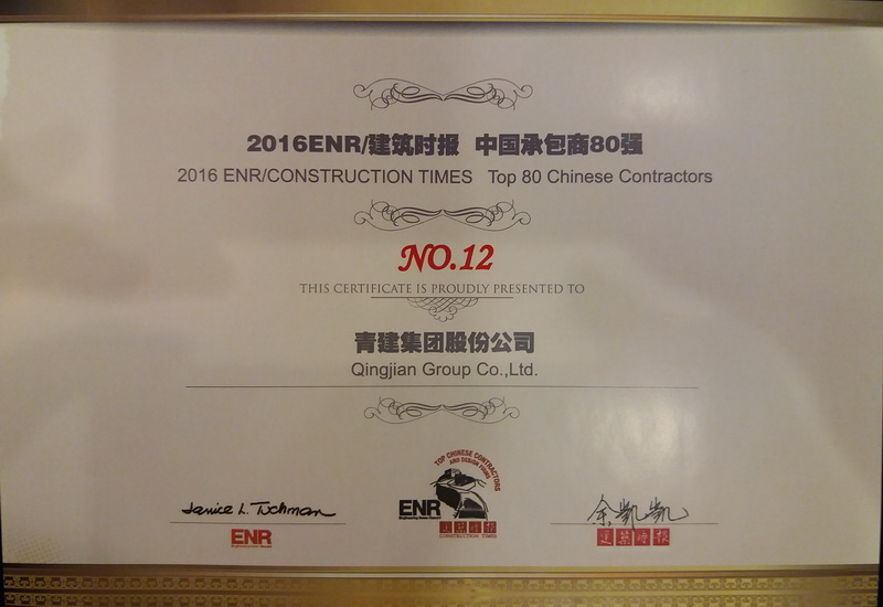 11月25日,2016年ENR/建筑时报“中国承包商80强和工程设计企业60强”颁奖典礼在福建省福州市举行。青建集团股份公司连续13年入选“中国承包商80强”,2016年位列第12位,较上年提升9个位次。