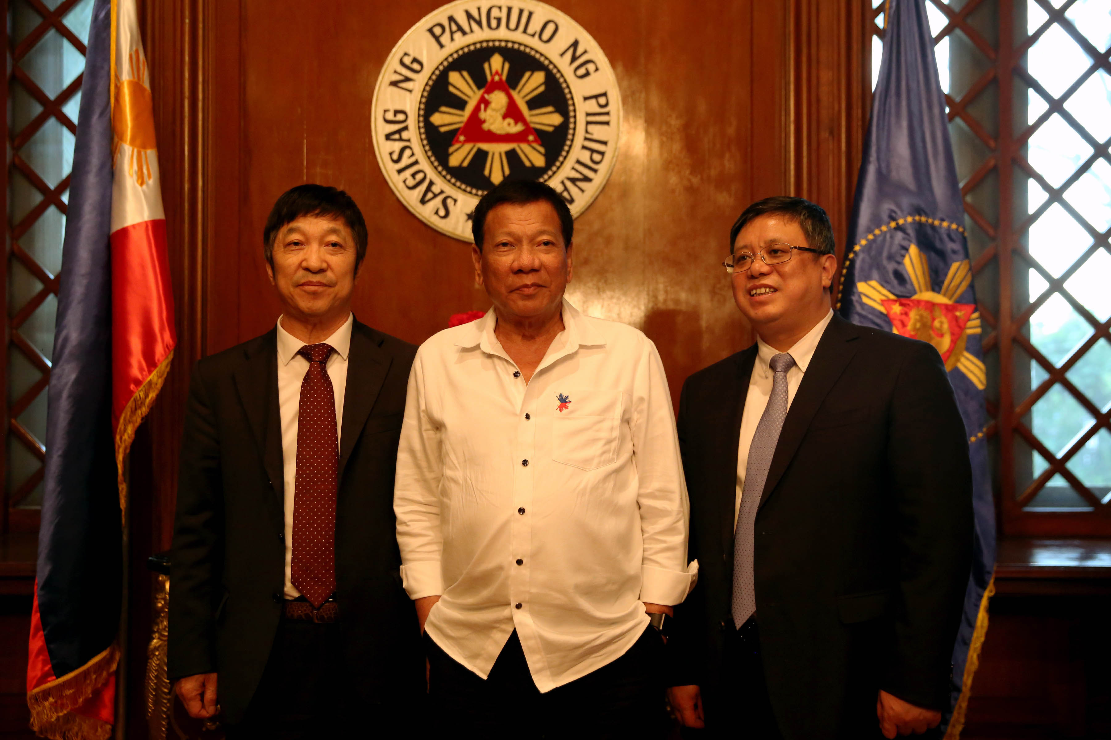 青建集团股份公司董事长王贤茂(右一)、青建国际集团总裁辛兆和(左一)与杜特尔特总统会见