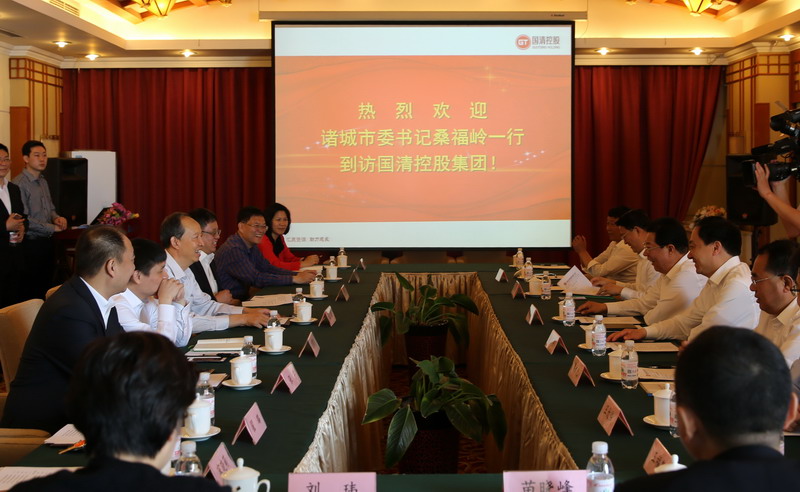5月17日, 诸城市委书记桑福岭,市委常委、常务副市长李庆华,市委常委、统战部部长赵治国,市委常委、组织部部长李永光,市委常委、市委办公室主任王爱民,副市长王大伟,市政协副主席、财政局局长韩培武,招商局局长王福泉一行到访集团。国清控股集团杜波主席、王贤茂总裁,万擎东、林春生执行总裁,总裁助理、人力资源部总经理林丽,总裁助理、诸城青建开发投资有限公司董事长张宇等领导在30楼会议室与来宾进行会谈。