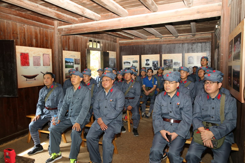 培训班设置了重走朱毛挑粮小道体验课程,课程安排在当年红军从宁冈挑粮上山道路中最为险峻的一段,全长3200米,翻越多个山头,路为羊肠小道,包含陡峭山石、乱杂竹林、茂密草地、险峻木桥等路况,学员们激情似火、斗志高昂,经过两个多小时完成体验课程,许多学员军服被汗水浸透、裤脚挂满泥土、手上被蚊虫叮起大包,用亲身经历感受革命斗争的艰辛。