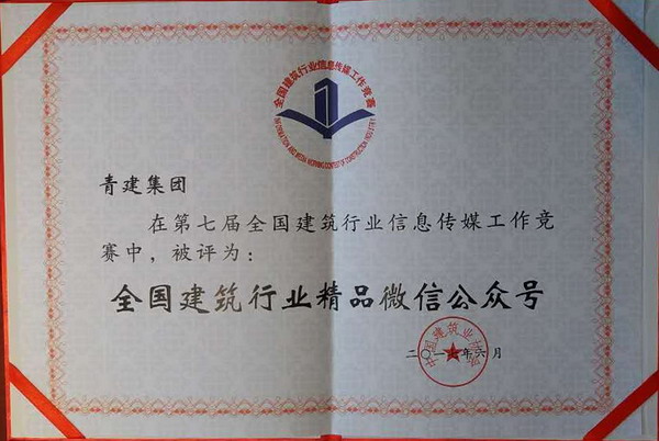 集团企业报《青建人》获评全国建筑行业精品报纸,集团官方网站91zbpro.com获评精品网站,集团微信公众平台“青建集团”获评精品微信公众号