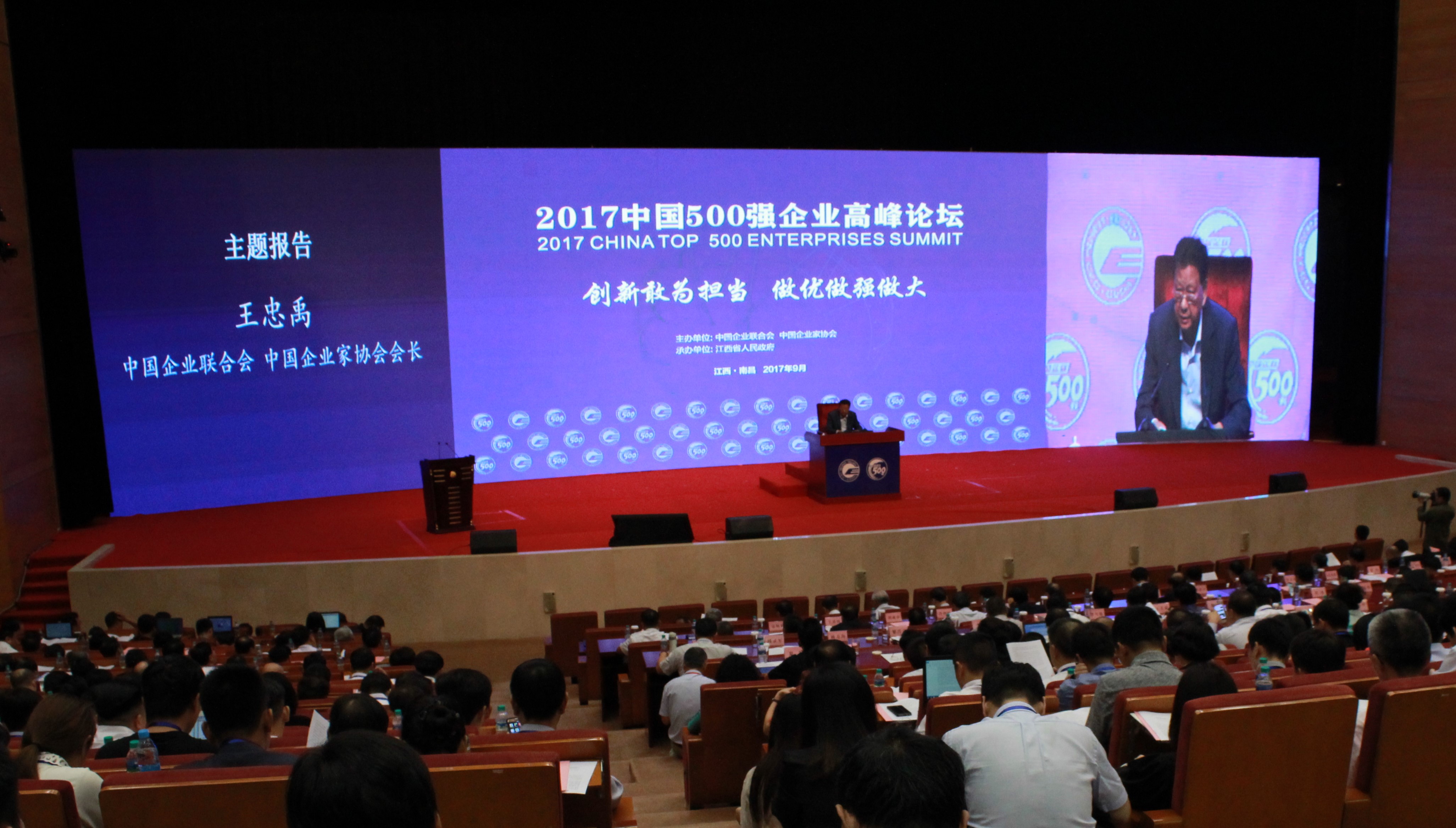 9月10日,王忠禹会长在中国企业500强高峰论坛上,作《创新敢为担当 扎实做优做强做大》主题报告,刘奇省长致辞。来自世界500强、中国500强企业的高层领导人、著名专家学者、主流传媒代表等1000多人出席会议。