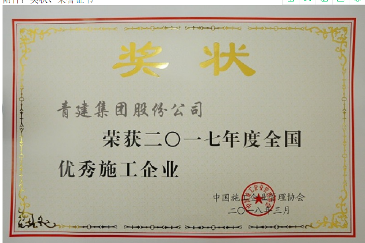青建集团以“建筑艺术精品、创造和谐空间”为企业使命,坚持精品理念,实施每建必优,近年来创建各类国家级精品工程百余项。2017年创建鲁班奖1项、詹天佑工程奖1项、国家优质工程奖3项、全国用户满意工程奖4项、中国建筑工程装饰奖2项、华东杯优质工程奖1项,公司连续多年荣获“全国优秀施工企业”、“全国用户满意企业”、“创建鲁班奖突出贡献单位”等国家级荣誉。
