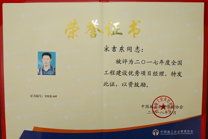 4月18日-20日,中国施工企业管理协会在安徽合肥召开了第33次年会及第七届四次理事会,会议对2017年度全国优秀施工企业、优秀项目经理进行了表彰,青建集团股份公司再次荣获“全国优秀施工企业”称号,项目经理宋吉东被评为“2017年度全国工程建设优秀项目经理”。