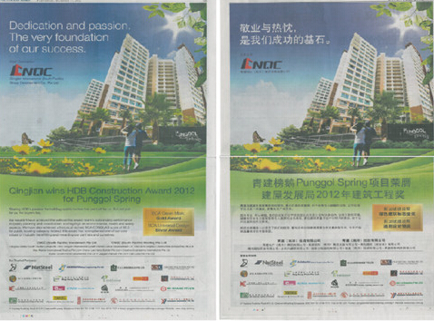 青建国际(南洋)集团发展有限公司获新加坡建屋局2012年建筑奖
