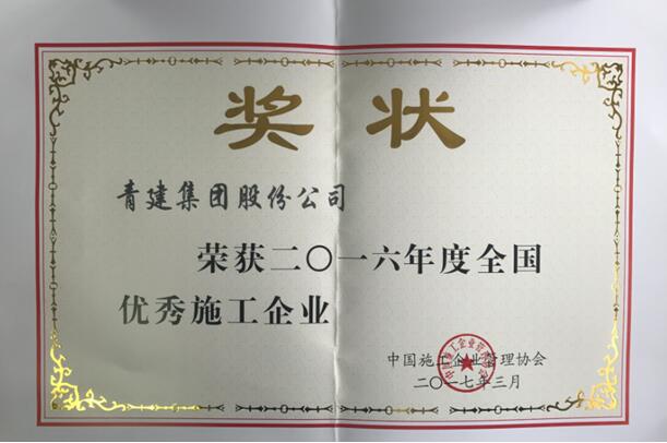 青建集团荣获“二〇一六年度优秀施工企业”